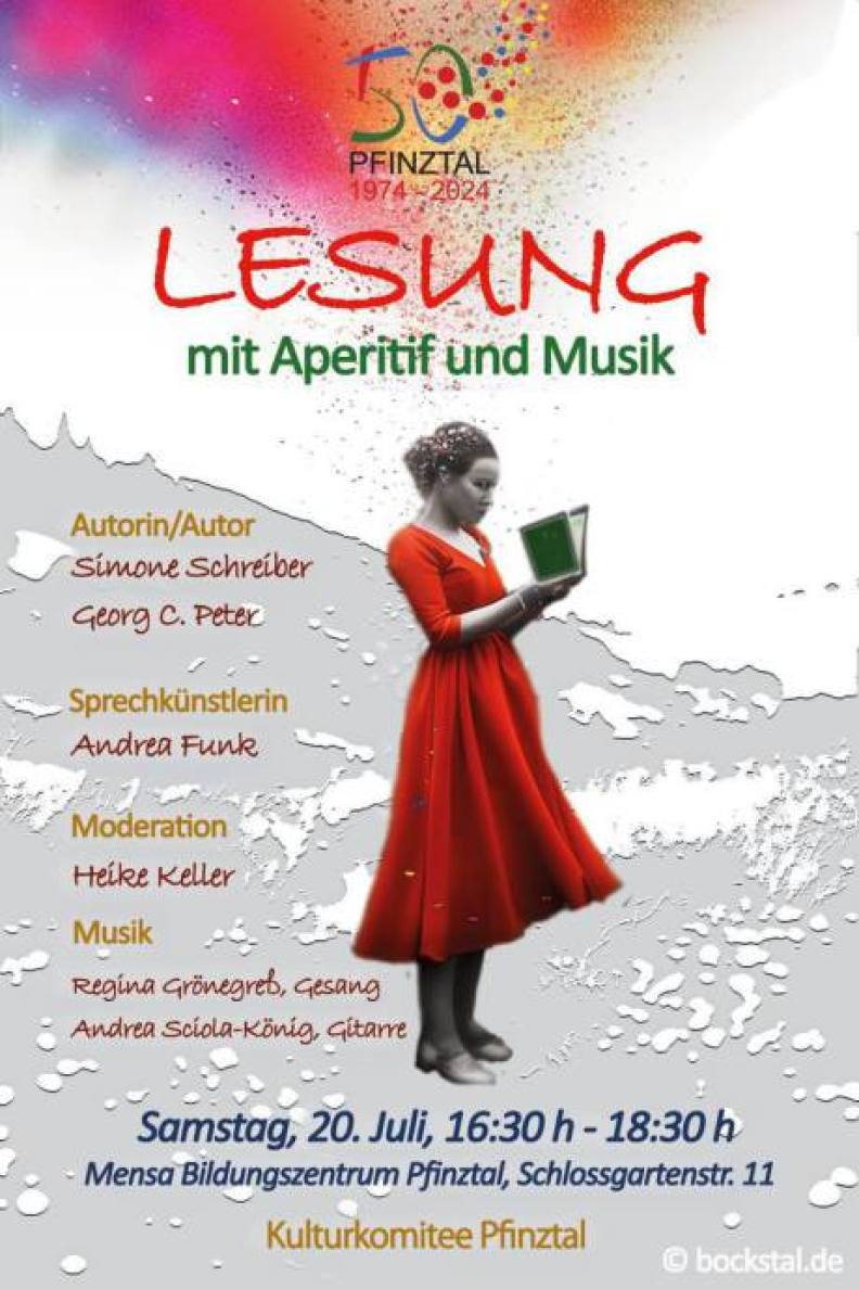 21.7.24, 16.30 Uhr, Bildungszentrum Pfinztal: Lesung mit Gesang. Georg Christoph Peter - Texte; Regina Grönegrß - Gesang; Andrea Sciola-König - Gitarre.